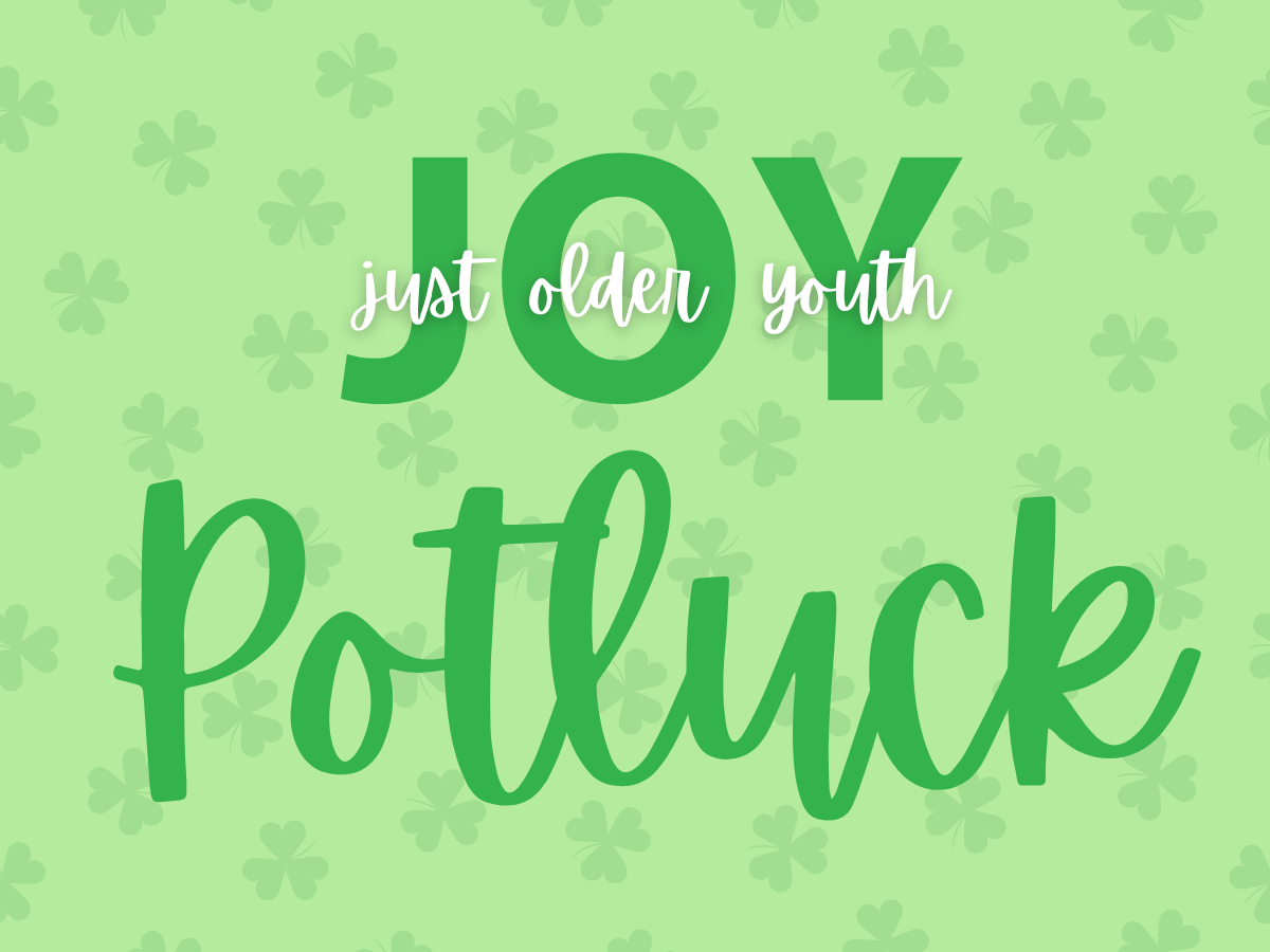 JOY Group (age 65+) join us on Sunday, March 8th at 12:00pm after the 11:00am service in the youth room at the church! RSVP to Drew Will. It will be St. Patrick's Day themed. Bring your favorite Irish entree, side, or desserts to share!